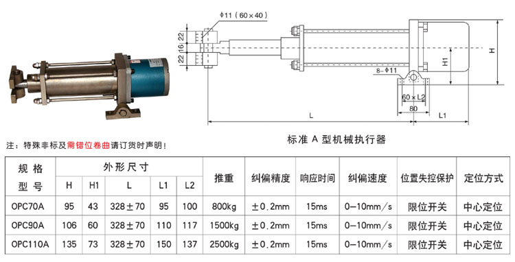 OPC-AB型光電糾偏系統(tǒng)由檢測單元(光電開關(guān)),控制單元(微電腦糾偏控制器)、執(zhí)行單元(步進(jìn)電機(jī)+滾珠絲杠)三大單元組成。光電糾偏系統(tǒng)結(jié)構(gòu)簡單,精度高,免維護(hù)。